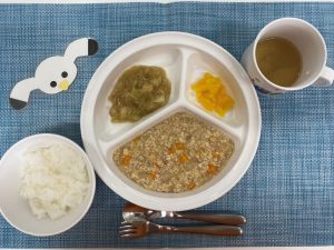 今日は、キーマカレーでした♪「あ!カレーの匂いがしてきた♪」と子どもたちは匂いにも敏感です。そして、お話も上手になってきました♪