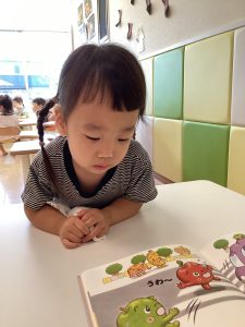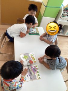 「おさんぽのおやくそくだもの」をみんなで読んでいます![]()