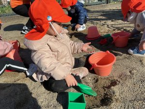 砂遊びでケーキも作れるようになりました
