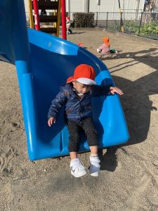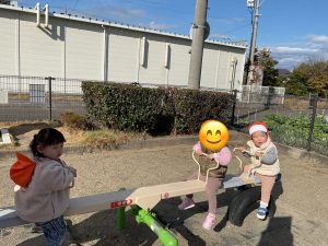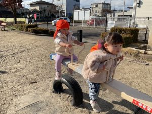 大好きな公園でシーソーや滑り台