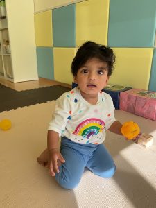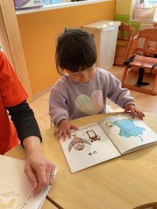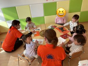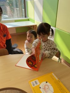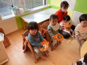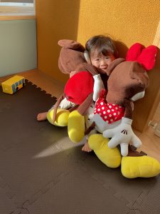 保育者に「ばぁ」と笑顔で見せてくれます![]()
