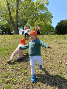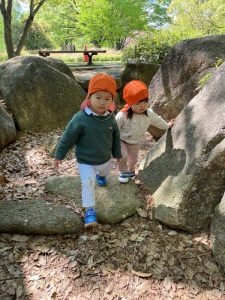 また、この園のある亀戸五丁目周辺をとっても目立つオレンジ色のユニフォーム(笑)で元気いっぱいの子どもたちとほぼ毎日お散歩しておりますので、