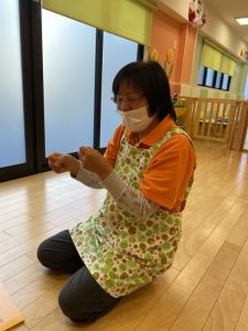 まずは「トントンアンパンマン」の手遊びをみんなでしましょう♬