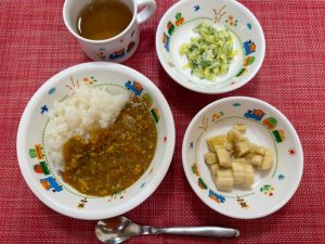 今日は、みんなが大好きなカレーライスでした!「いい匂い♪」「早く食べたいね♪」と子どもたちでお話していて、給食を楽しみにしてくれてこちらも嬉しくなりました♪