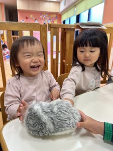 一人ずつてのひらにのせてみると、驚いたり、「あったかい…」と嬉しそうな声が