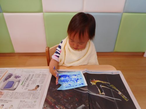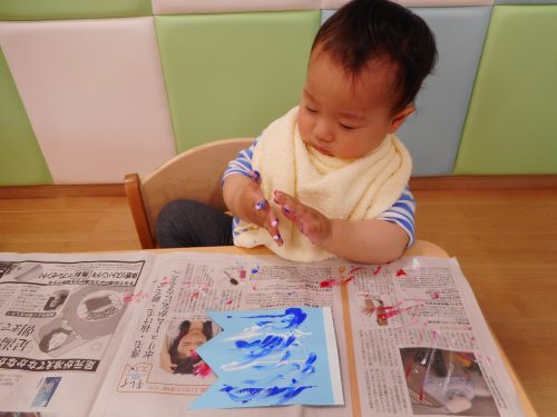 これ何?ふ~ん絵の具っていうのか。お家でもやってみたいな。