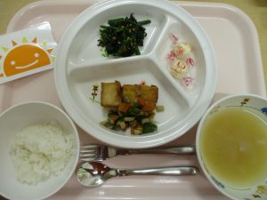 ※厚揚げのステーキの厚揚げは、トースターや魚焼きグリルで焼いてから、子どもが食べやすい大きさに切っても良いです。子どもが食べやすい大きさの目安は、子ども用のスプーンにのる位の大きさです。