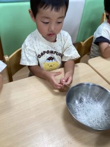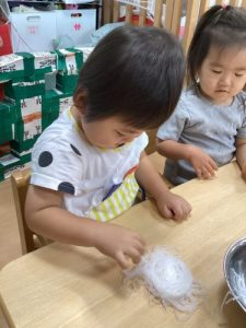 さっきまで触っていたものと同じものとは思えないほどに様子が変わった春雨やわかめに子ども達はびっくり❗️