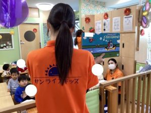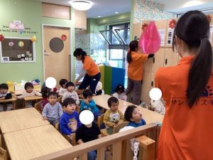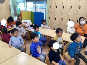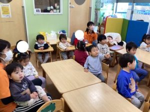 子ども達も保育者が「どっちからくるかな?」と言うと指差しをしたりして「こっち!」