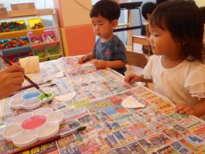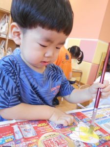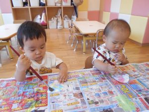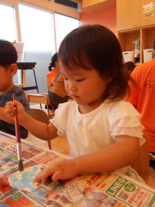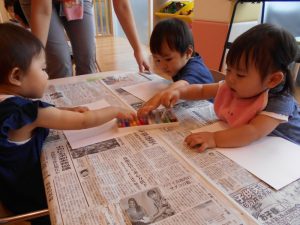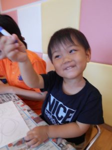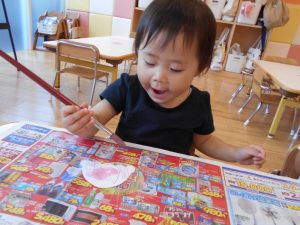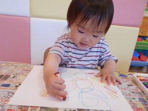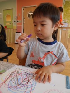 まず、グルグルと楽しく画用紙にお絵描きしました![]()