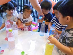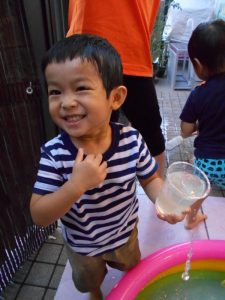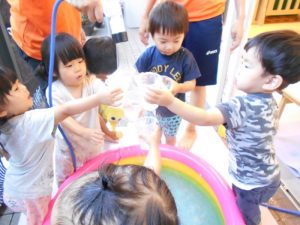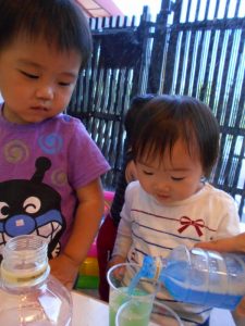 水を注ぐ感覚や音などを感じて楽しんでいました![]()