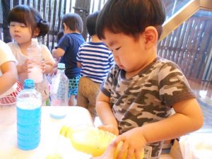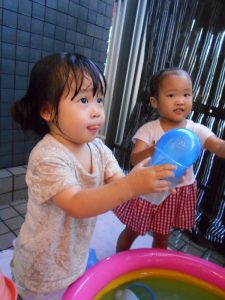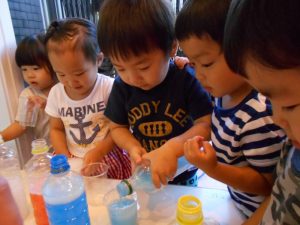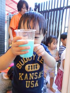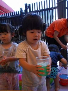 顔に掛かるのがちょっぴり怖かったお友だちも少しずつ慣れてきました![]()