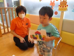 『好きな色』『好きなあそび』をフラッシュカードの中から好きなものを選び、教えてくれました