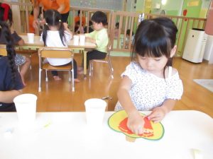 りんご組さんはかぼちゃをお月さまにプレゼントするため作りました