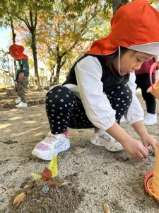 最近は日中でも肌寒さを感じるようになりましたが、子どもたちは戸外に行くことをとても喜んでおり、元気いっぱい遊んでいます