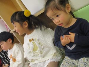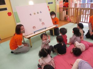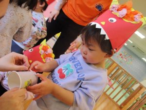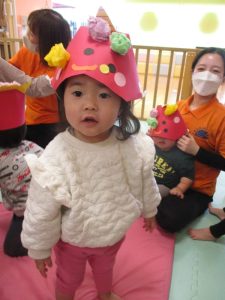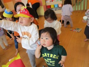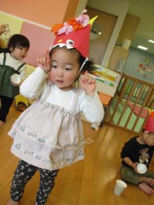 この日まで鬼のお面を作ったり、絵本を見たり『まめまき』や『おにのパンツ』のうたを歌ったりしながら期待を膨らませていた子どもたち