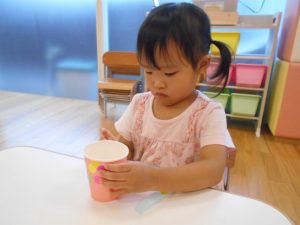 紙コップにたくさんシールを貼ったよ‼