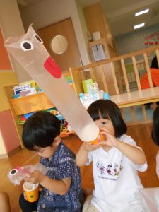 製作では、おばけが飛び出る手作りおもちゃを作りました!![]()