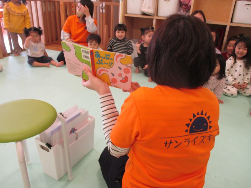 こんにちは!サンライズキッズ保育園観音新町園です 今回の絵本は『あっぷっぷ~!!』ですにらめっこしましょわらうとまけとあっぷっぷ~♪子どもたちにもお馴染みのうたとともに進んでいくお話絵本に登場...