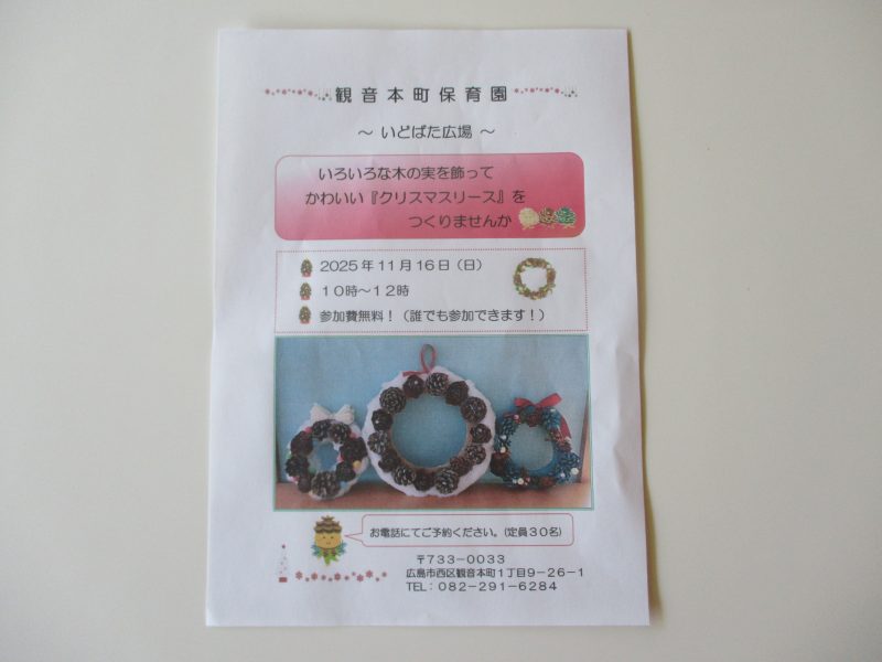 こんにちは!サンライズキッズ保育園観音新町園です 今日は連携園の観音本町保育園の12月のいどばた広場についてお知らせします。日時:2025年12月21日(日)10時〜12時参加費:無料内容:小物入...