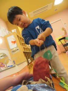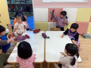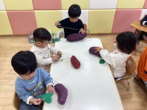 手作りのさつまいもが完成し、手作りの畑に埋めてさつまいも掘りの擬似体験を楽しみました😊