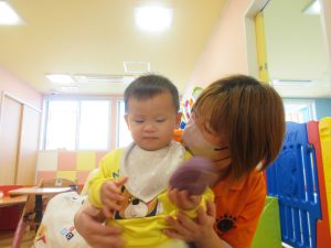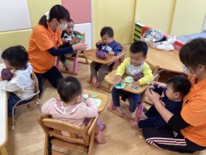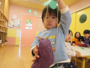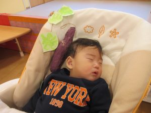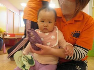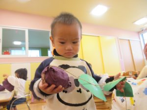 1人に一つずつさつまいもを手に取ると、そのまま椅子に戻りお友だちと見せ合いっこをしました😆
