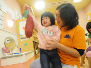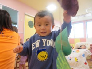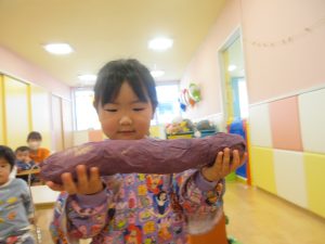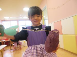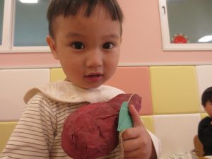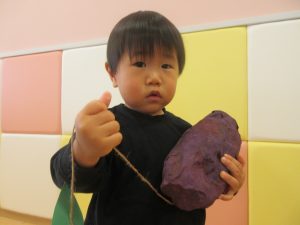 本物のさつまいもと新聞紙のさつまいもを比べて両手に持っている子もいました😃
