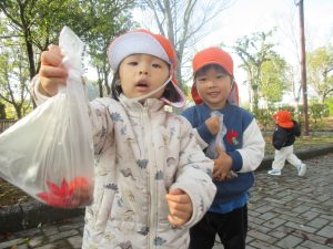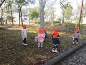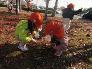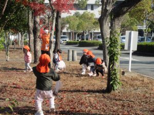 たくさん落ちている葉っぱに気づいたお友だちは夢中になって歩き回って探していました😊