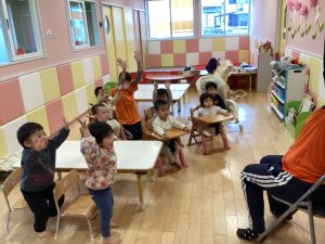 だるまさんが「ぷっ」としたり「びろーん」としたり子どもたちは体全部を使って、大喜びで真似っこしています😊