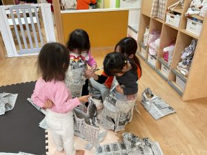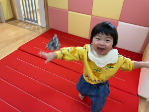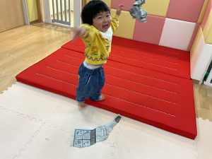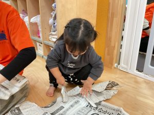 今日は新聞日遊びを楽しんでいる1歳児いちご組さんの様子をご紹介いたします♪