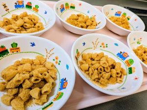 「今日はカレーライスだよ~♪」と先生が言うと、みんな嬉しそうにやったー!\(^_^)/と喜んでいました。おかわりもして、美味しくたくさん食べてくれました。