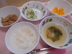 2019-06-26 6月26日(水)給食? Category:給食ピックアップ ★幼児食★ ◆ご飯 ◆みそ汁 ◆チキンと野菜のケチャップ煮 ◆粉ふき芋 ◆オレンジ ★離乳食★後期★ ◆軟飯 ◆みそ汁 ◆煮込みツナ ◆粉ふき芋 ◆オレンジ