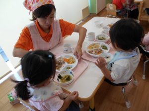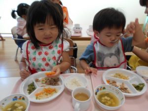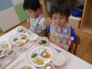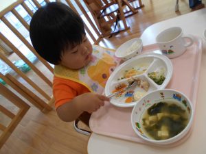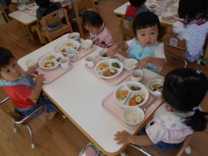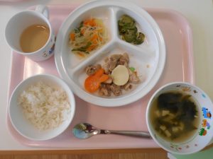 その日のお給食は月見ハンバーグでしたが災害の影響でメニューを変更しました。