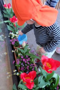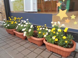 子どもたちが一生懸命植えて育てたお花はとってもきれいに花を咲かせています![]()