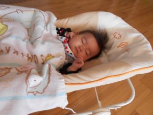 その間・・・僕はラックにゆらゆら・・・気持ちよさそうにぐっすり