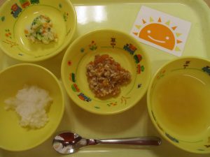 ※今日はプルーンがでました。ドライプルーンには、お腹の環境を整える食物繊維が豊富で、便秘解消にも効果があります。食べにくいかもしれませんが、少しずつ色々な食材に慣れていけたらいいですね♪