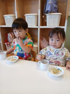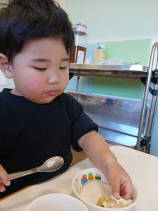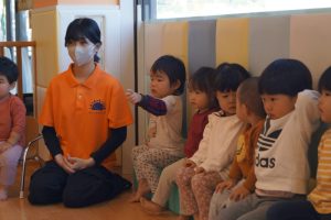 その後の保育士の「これな~んだ?」のスケッチブックシアターでは、元気よく「ライオン!」や「アンパンマン!」と大きな声で答えてくれました。
