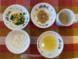 【離乳食(初期)】エネルギー50kcal たんぱく質1.3g 脂質0.5g 粥 野菜スープ 豆腐ペー...