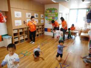保育園の生活にもすっかり慣れて、大好きなリズム遊び先生のピアノの曲に合わせて楽しみました。 5月生ま...