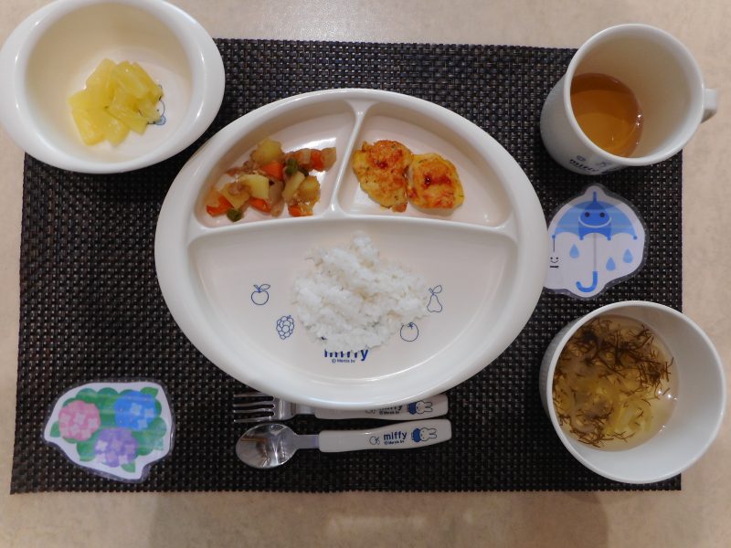 2018.06.21|給食ピックアップ ・ご飯 ・ツナとじゃがいもの煮物 ・ささみのピカタ ・もずくのスープ ・パイン缶 ※0歳児にはパイン缶は提供していません。 0歳児のデザートはりんごです。 前へ 次へ