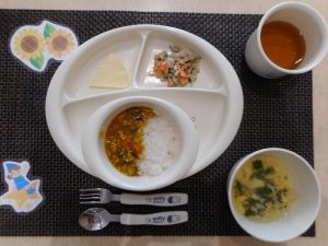 ・夏野菜カレー ・ごぼうのサラダ ・チーズ ・わかめスープ