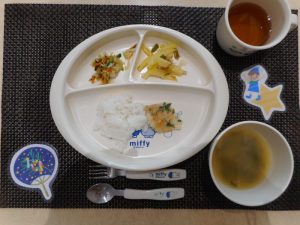 ・ご飯 ・鶏肉のマーマーレード焼 ・七夕サラダ ・南瓜の甘辛煮 ・キャベツのみそ汁