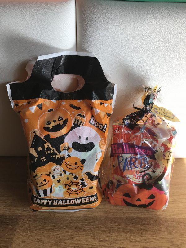 「トリックオアトリート!」と元気に声を掛けて素敵なお菓子をもらいました保育園からもお菓子のプレゼント