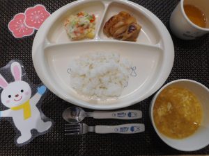 ・ごはん、コーンスープ、ローストチキン、ポテトサラダ