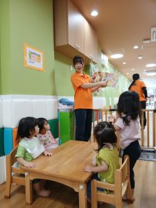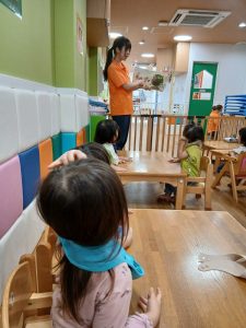 2025-11-21 11月21日⭐︎絵本読み聞かせプログラム Category:絵本 こんにちは!サンライズキッズ保育園北区園です 今日ご紹介するのは「くだものだもの」という絵本です。 かわいらしいお顔の描かれたくだものたちがたくさん出てくるユニークなお話🍊🍇🥭 最後にスイカさんがぱくっとごちそうを平らげてしまう場面では、一緒になって大きなお口を開ける姿がとってもかわいらしい子どもたちです🍉😋
