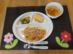 ・ツナスパゲティ ・コンソメスープ ・ドレッシングあえ ・バナナ 【離乳食】 ・しらす...
