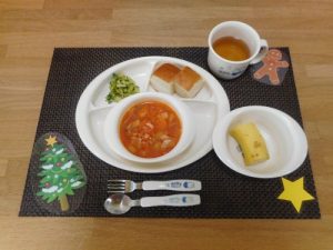 ミルクパン ミネストローネスープ ブロッコリーのおひたし バナナ