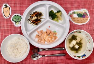 サンライズキッズ保育園 ◎給食の様子 「今日、魚!」と、嬉しそうにお魚(さばの塩焼き)...