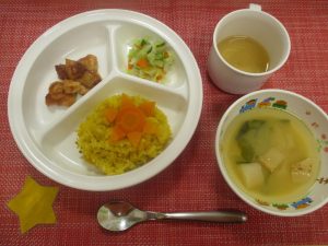 サンライズキッズ保育園 ◎給食の様子 今日は、五感から楽しめるメニューでした!!カレーの香りや食欲を...