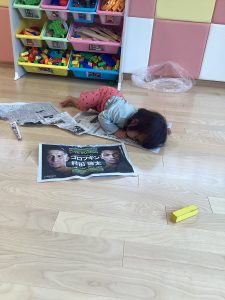 新聞遊びをしている中、新聞のにおいをかいでる⁈